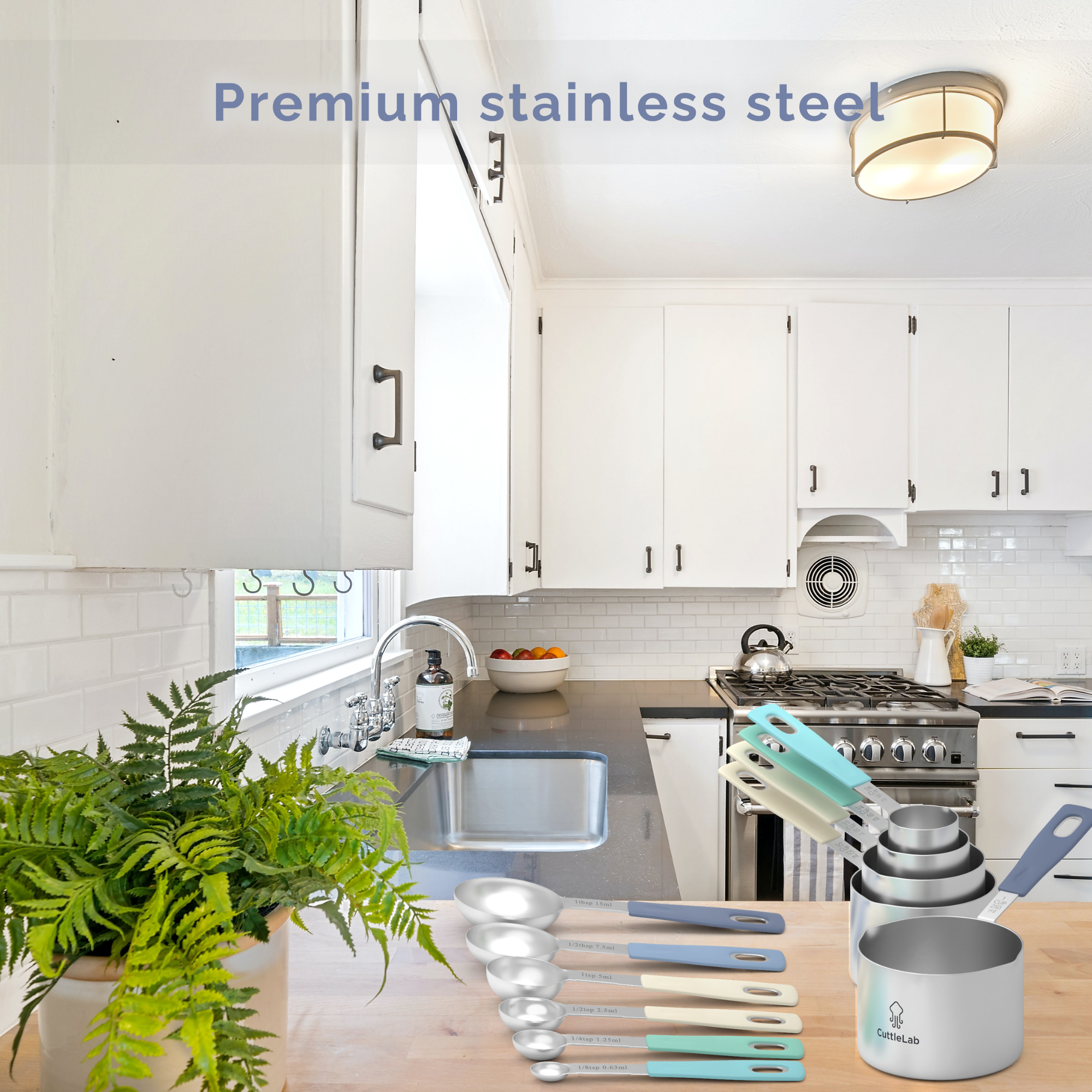 14-Piece Measuring Stainless Steel Cups and Spoons in Farmhouse